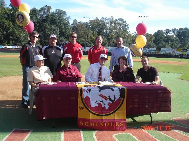 Jordan Priddle signed an athletic scholarship (November 10, 2010) to play baseball at Florida State University in Tallahassee, Florida, for spring of 2012.
